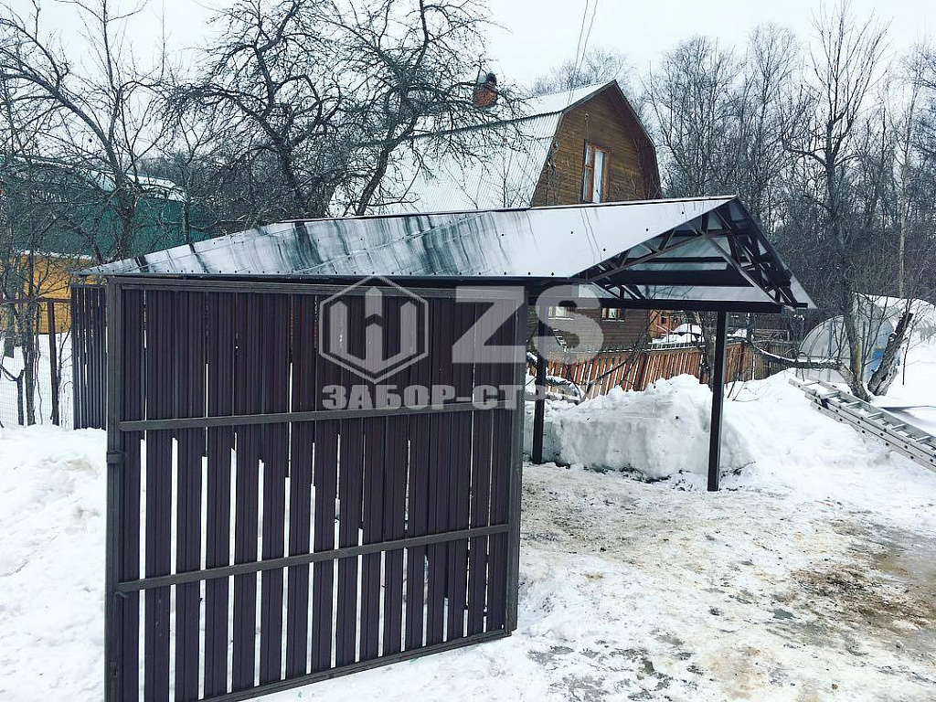 Стандартные характеристики каркаса навеса: столбы 80х80х3мм.